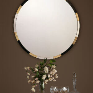 • The GADANY round mirror is embellished with black and gold leaf edging. Adding an understated splash of colour to any space. Fixings not included; please use screws and wall plugs appropriate for the construction of your wall. IF UNAVALIABLE IN STORE WE CAN ORDER IN FOR YOU.