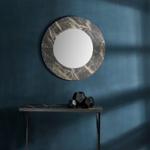 • Our modern JUVAN round mirror features a dark marble effect border that surrounds a round mirror within. This attractive mirror is great for bringing a contemporary aesthetic to your living space. Fixings not included; please use screws and wall plugs appropriate for the construction of your wall. IF UNAVALIABLE IN STORE WE CAN ORDER IN FOR YOU.