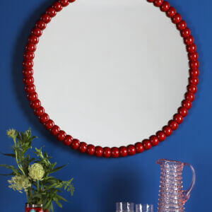 • The Ruan Bobbin Round Mirror in rich gloss red finish offers a contemporary twist on a traditional design. The Bobbin mirror features a wooden bobbin on top of the mirror, which adds a fun and quirky touch. The natural wood finish complements any decor, from modern to traditional. The Bobbin mirror is designed to complement the Spool Bobbin table & Floor lamp,…