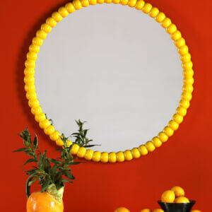 • The Ruan Bobbin Round Mirror in bright gloss yellow finish offers a contemporary twist on a traditional design. The Bobbin mirror features a wooden bobbin on top of the mirror, which adds a fun and quirky touch. The natural wood finish complements any decor, from modern to traditional. The Bobbin mirror is designed to complement the Spool Bobbin table & Floor lamp,…
