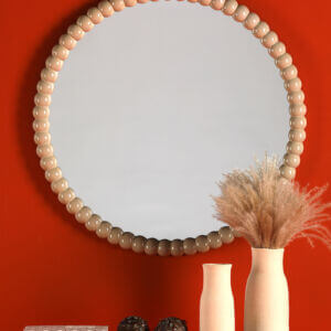 • The Ruan Bobbin Round Mirror in neutral gloss cream finish offers a contemporary twist on a traditional design. The Bobbin mirror features a wooden bobbin on top of the mirror, which adds a fun and quirky touch. The natural wood finish complements any decor, from modern to traditional. The Bobbin mirror is designed to complement the Spool Bobbin table & Floor…