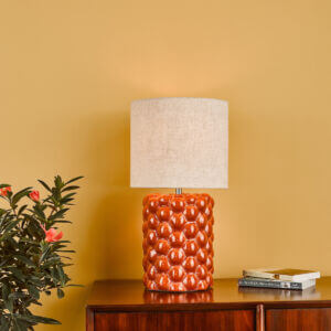 - Transform your space and let your bold side shine with the Jayden Orange Bobble Table Lamp. Add a fun twist to your room with its funky design and whimsical bobble finish in a burnt umber glaze. With its rustic linen shade and handy grey fabric cord, this lamp is the perfect addition for those who love to take risks. Don't…