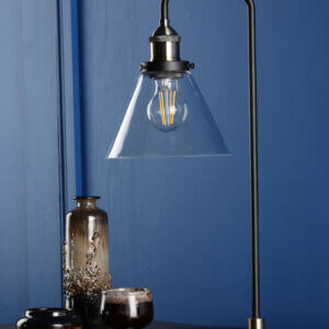 - The Ray Table Lamp brings a refined industrial edge to your space with its matte black finish and antique brass accents. The cone glass shade diffuses light for a cosy glow. An inline rocker switch mounted on the black cable lets you light up the scene with ease. Part of our popular Ray range featuring ceiling lights, wall lights and a floor…