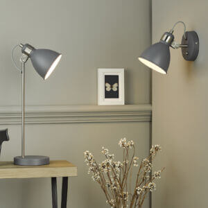 - The Frederick task table lamp evokes a sense of the industrial era. Shown in a painted matt dark grey finish for a cool Nordic take on the refined industrial look, it is complemented by satin chrome metalwork. This smart task light is just the job for your home office. The Frederick Task Table Lamp comes with Coordinating ivory braided cable,…
