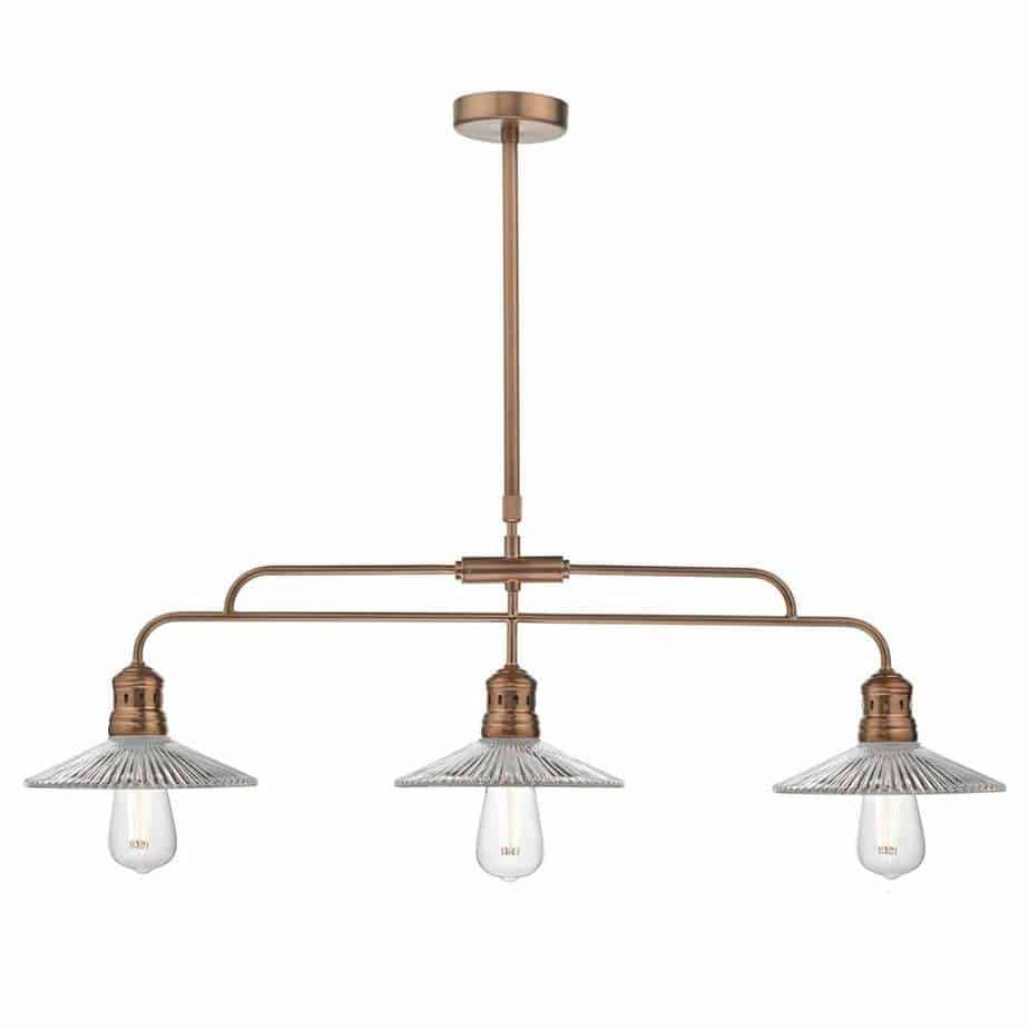The Adeline bar pendant has brushed copper metal work and a pressed glass shade, to look like it has come straight from a quaint French farmhouse kitchen.
