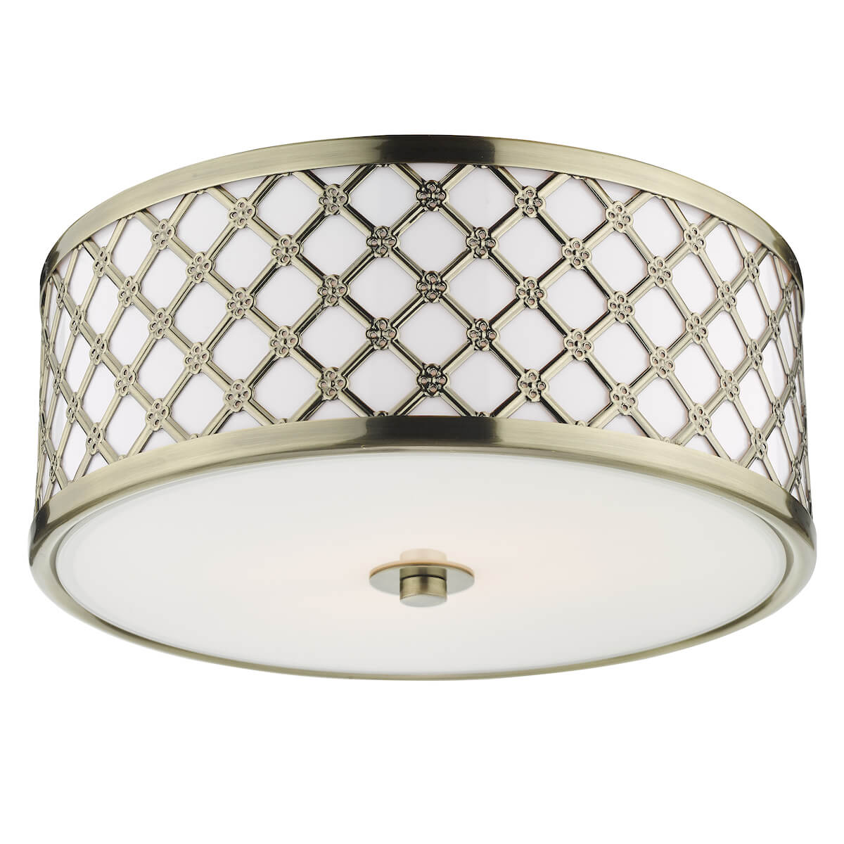 The timeless Civic 2 light flush light fitting features polished chrome fretwork on the outer frame, laid over a frosted glass inner, and is finished with an opaque glass diffuser to soften the light.