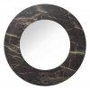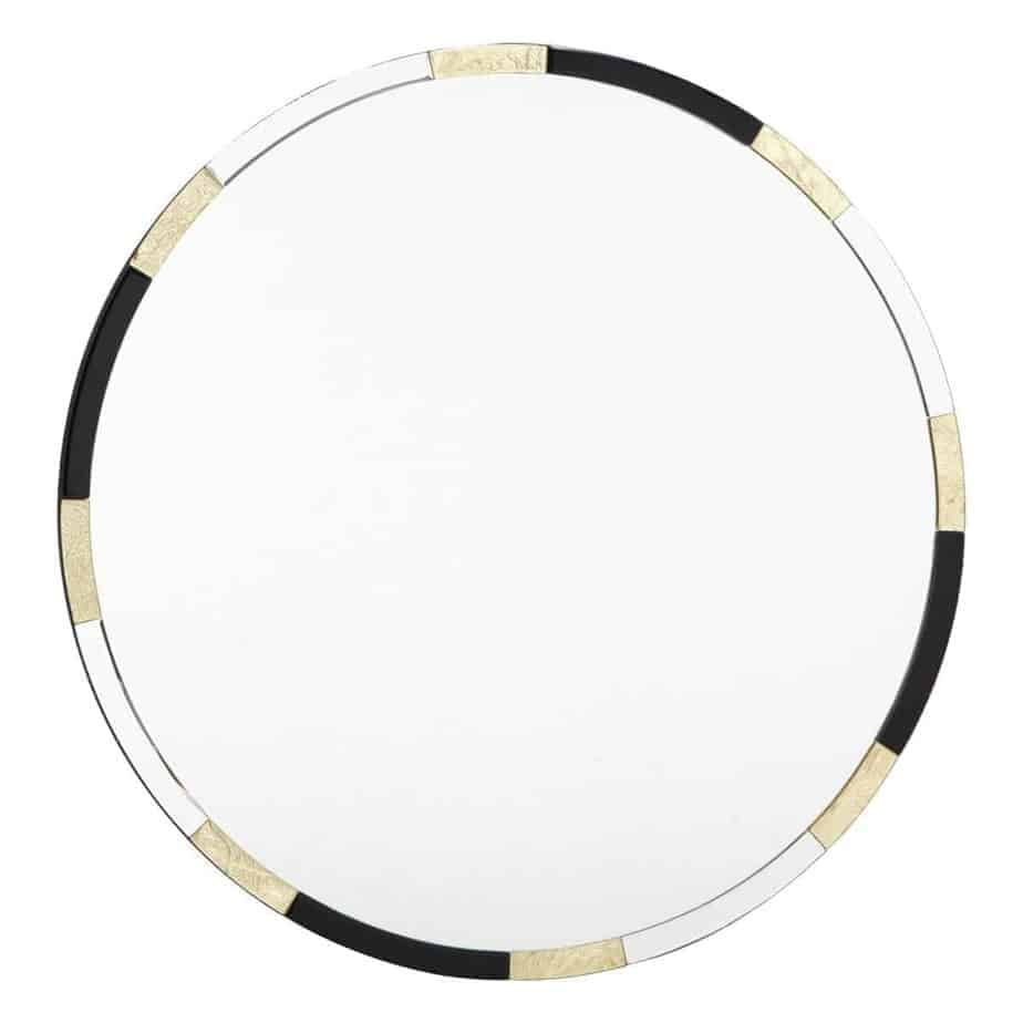 The GADANY round mirror is embellished with black and gold leaf edging. Adding an understated splash of colour to any space.