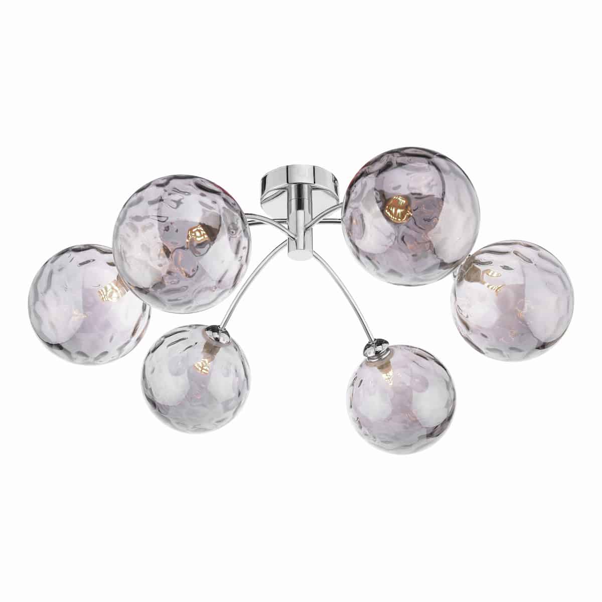The IZZY 6 light semi flush in a timeless polished chrome finish with large clear dimple glass shades.