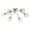 The Keta 5 light Pendant KET5446 is a semi flush ceiling light featuring glass shades with a retro look resting on a complementing satin chrome frame and glass.