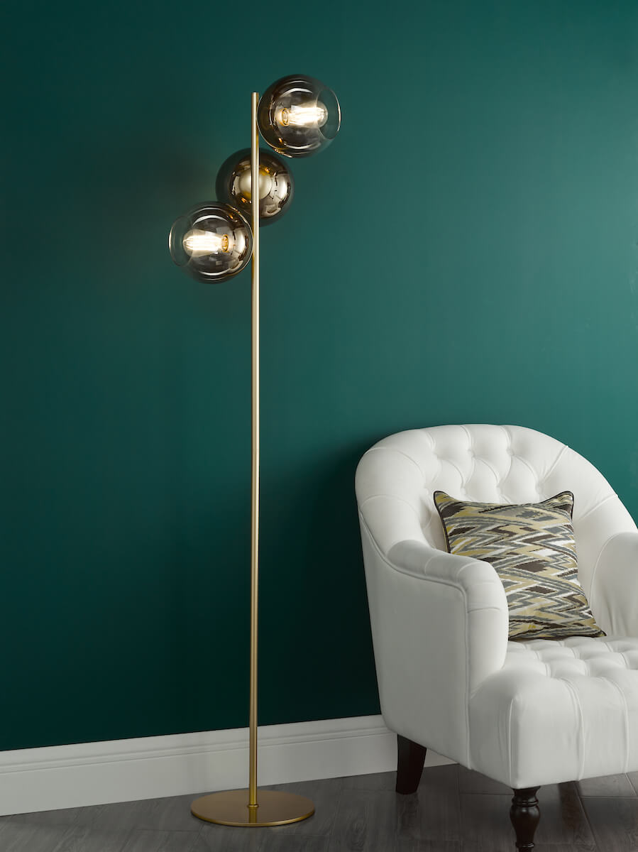 Update your space with the Lycia 3 Light Floor Lamp – a stunning lighting option that combines elegance and sophistication. Its Satin Gold finish exudes glamour while the contemporary, mirrored gold base plate adds a modern touch. The ombre gold glass shades create a warm and inviting ambience, making you feel right at home. This floor lamp is ideal for any room, whether it’s the living room, bedroom, or entryway, and will elevate the aesthetic of your décor with its eye-catching design. The Lycia is part of a range that also has multiple ceiling light fixtures as well as a matching wall light and all come in a gold or black finish.