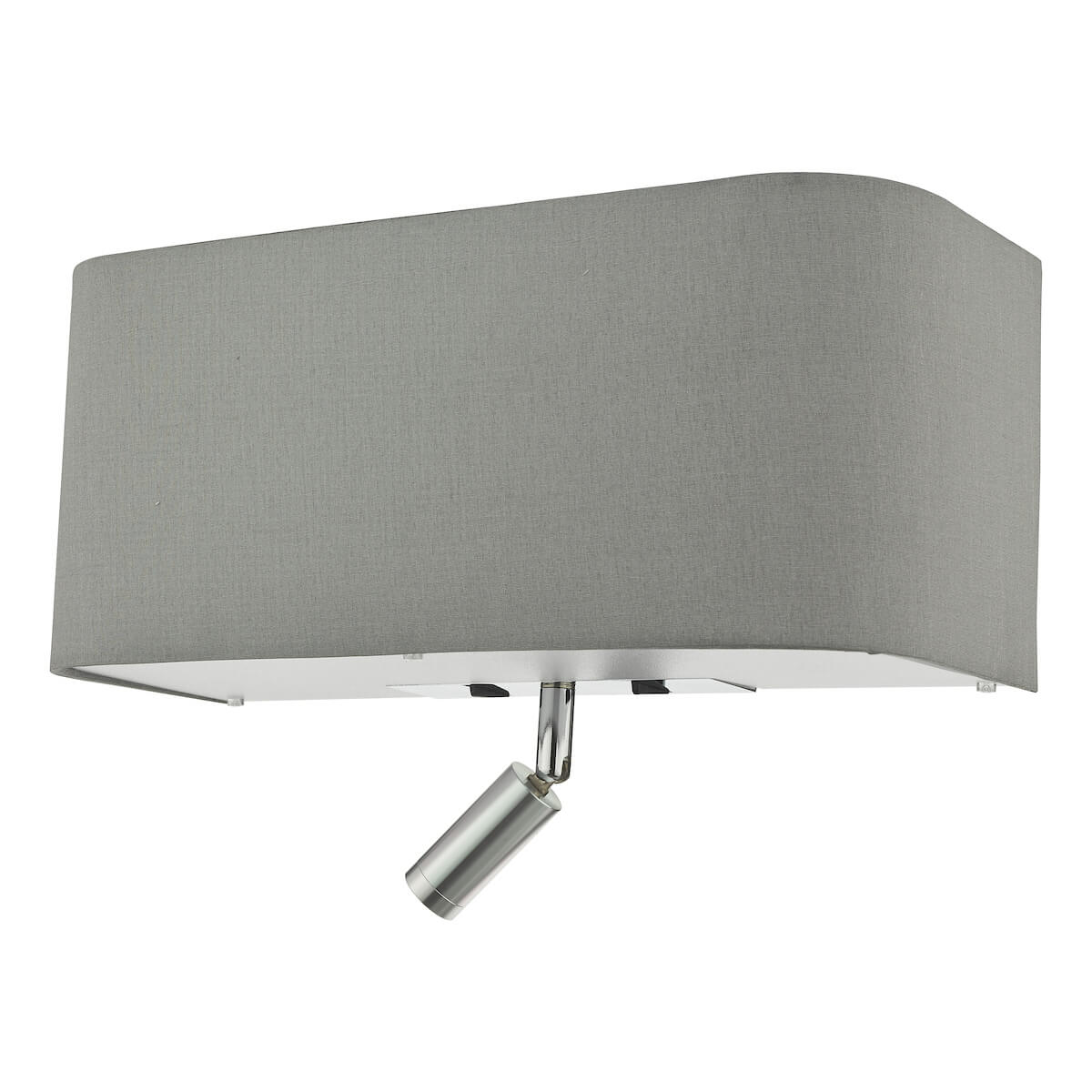 The Ronda 2 light wall light with grey faux silk shade is a slim-line design, protruding less into the room.