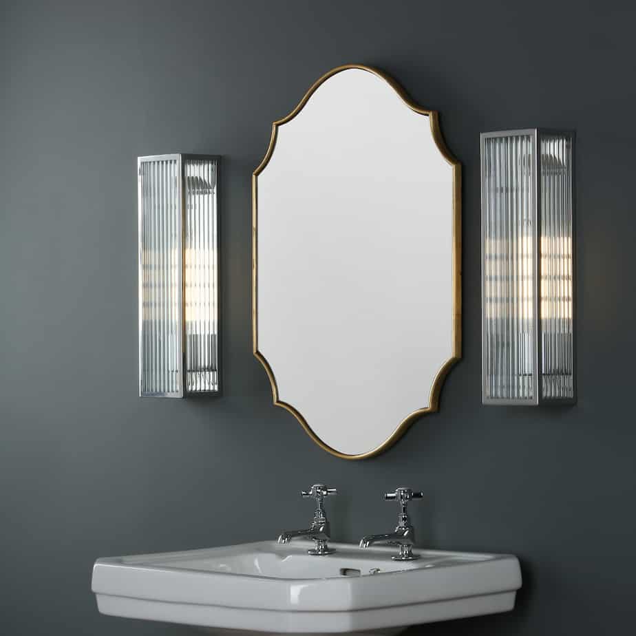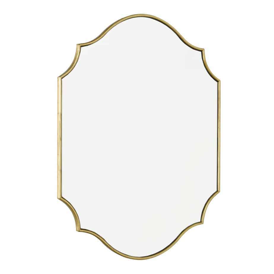 The RUGGIERO is a classic swept edge mirror, finished with gold foil detail on the slender frame.