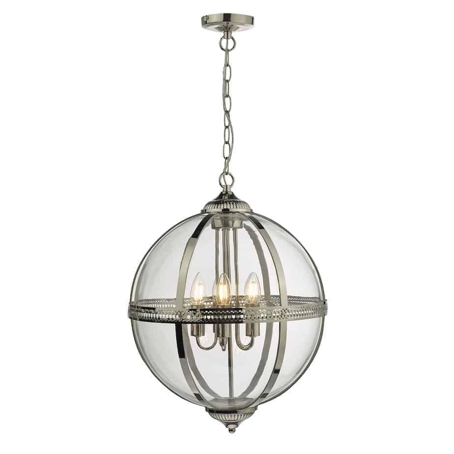 Finished in polished chrome with 1m of chain which is height adjustable on installation. A matching wall lamp is also available.