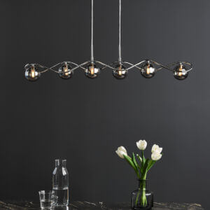 - The Lysandra 2 light table lamp is a beautiful and elegant table lamp with a fluid shape and smoked glass shades. The Lysandra 2 light table lamp features a polished chrome base with a contemporary curve and clear cable. This table lamp is perfect for lighting a dining table or any room that needs a touch of style. The Lysandra table…