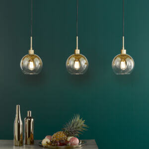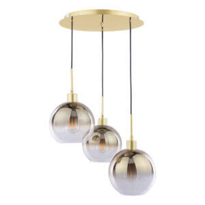 - The Lycia 3 light cluster pendant offers versatility with its ability to accommodate both small globe lamps and vintage style LED lamps (sold separately) is crafted with large mirrored ombre glass globes in a satin brass finish. The ceiling plate boasts a mirror polished finish with sleek black detailing. The accompanying black cables are height adjustable by a qualified electrician…