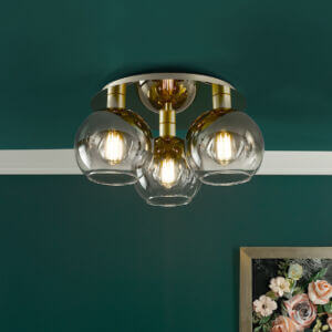 - The Lycia 3 light flush ceiling light features large mirrored ombre glass globes able to take a small globe lamp or vintage style LED lamp (sold separately). The ceiling plate features a mirror polished plate with black detailing. The low profile of the Lycia flush ceiling light makes it perfect for low ceilings. This simple contemporary cluster pendant is part of the Lycia…
