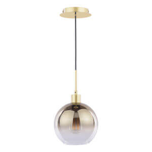 - The Lycia gold single pendant comes with a mirrored ombre glass globe that can hold a small globe lamp or vintage style LED lamp (sold separately). Part of the Lycia series, this modern pendant is also offered as a flush ceiling light, semi-flush ceiling light, and 3-light bar pendant. Complete the collection with a matching floor lamp and single wall…