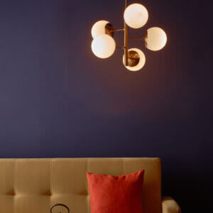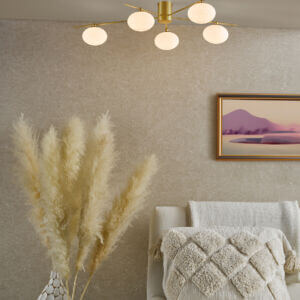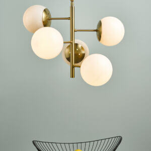 • The Bombazine 5 Light Pendant features 5 oversized opal glass globes that are mounted on a natural brass frame with a height adjustable rod suspension. With an authentic mid-century feel, the Bombazine pendant exudes style and glamour whilst providing a great light output. Perfect for hanging above tables or as an elegant showpiece in any room. Click here to view…