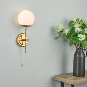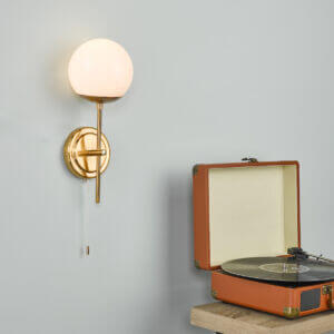 • The  classic BOMBAZINE 1 light wall light in a rich bronze and gloss opal glass, perfect for bedrooms where it can be mounted on either side of the bed, freeing space and the pull cord switch is easy to turn on in the dark. Equally It can be used in hallways or any other indoor living space. Takes 1 40w…