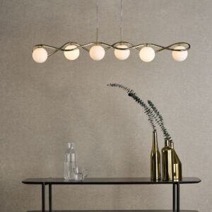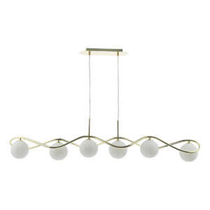 • The Lysandra 6 Light Bar Pendant polished gold and opal glass gives a refined industrial edge to your space with its fluid curves and opal glass shades. The Lysandra bar pendant features a clear cable with a polished gold finish allowing the shades to really shine. The Lysandra 6 light bar pendant features an adjustable height on installation, allowing you to…